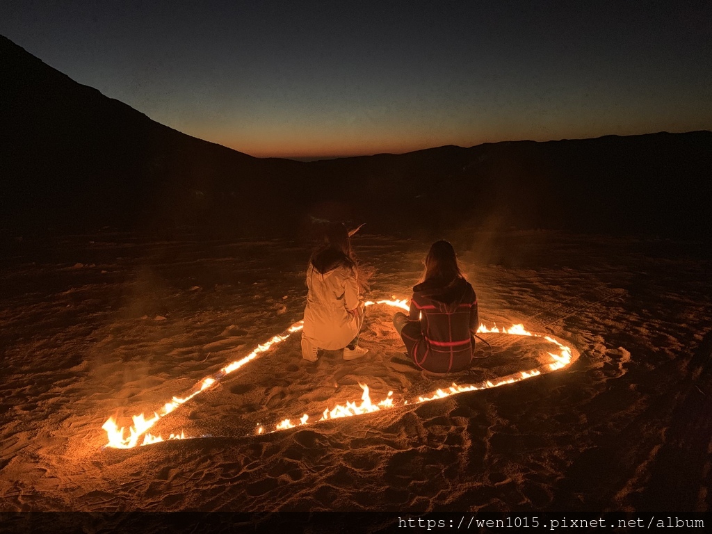 嚮導在沙上畫了一個愛心 讓大家體會了一下被求婚的感覺