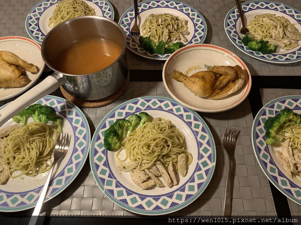 今天晚餐 青醬雞肉義大利麵配烤雞和南瓜湯