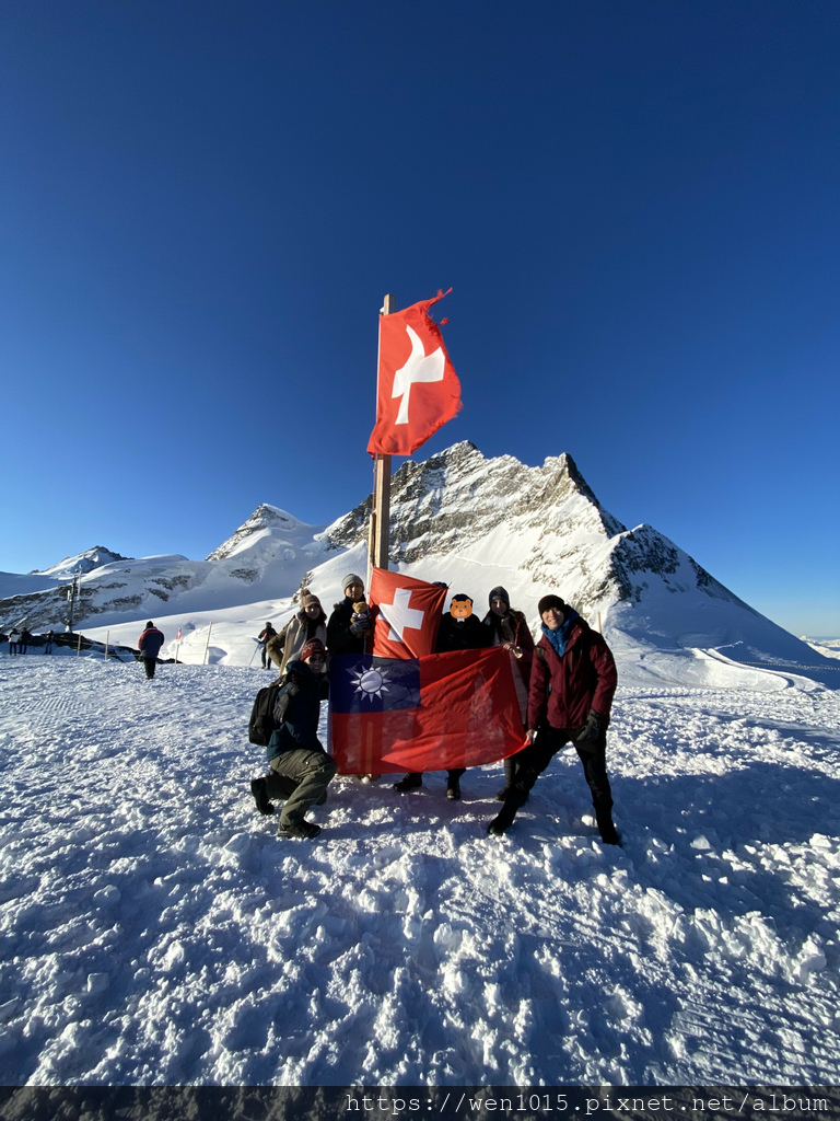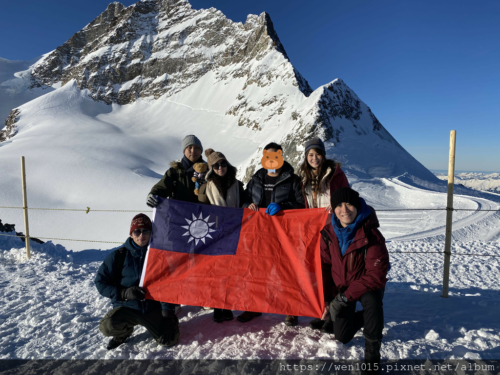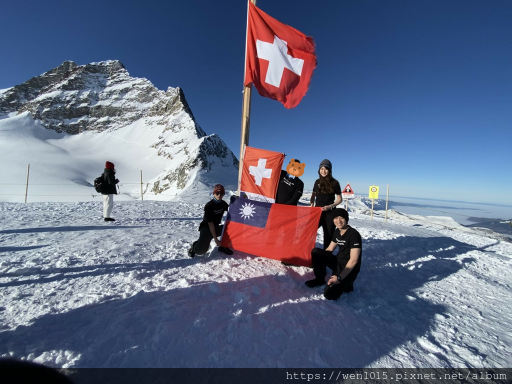 拜託 有誰能在1/1去少女峰 穿短袖 還穿公司團服的 這不拿第一誰能拿第一啊