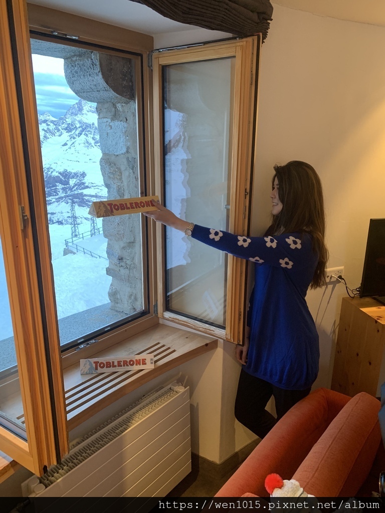 拿出山下買的超大三角巧克力 一切都是為了可以完美比對馬特宏峰