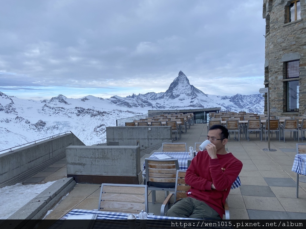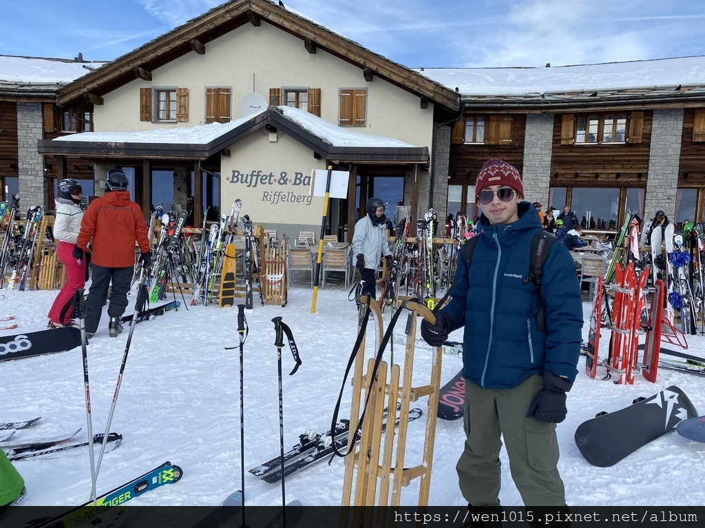 1點半 回到Riffelberg車站 很多滑雪或玩完雪鍬的人在這邊休息