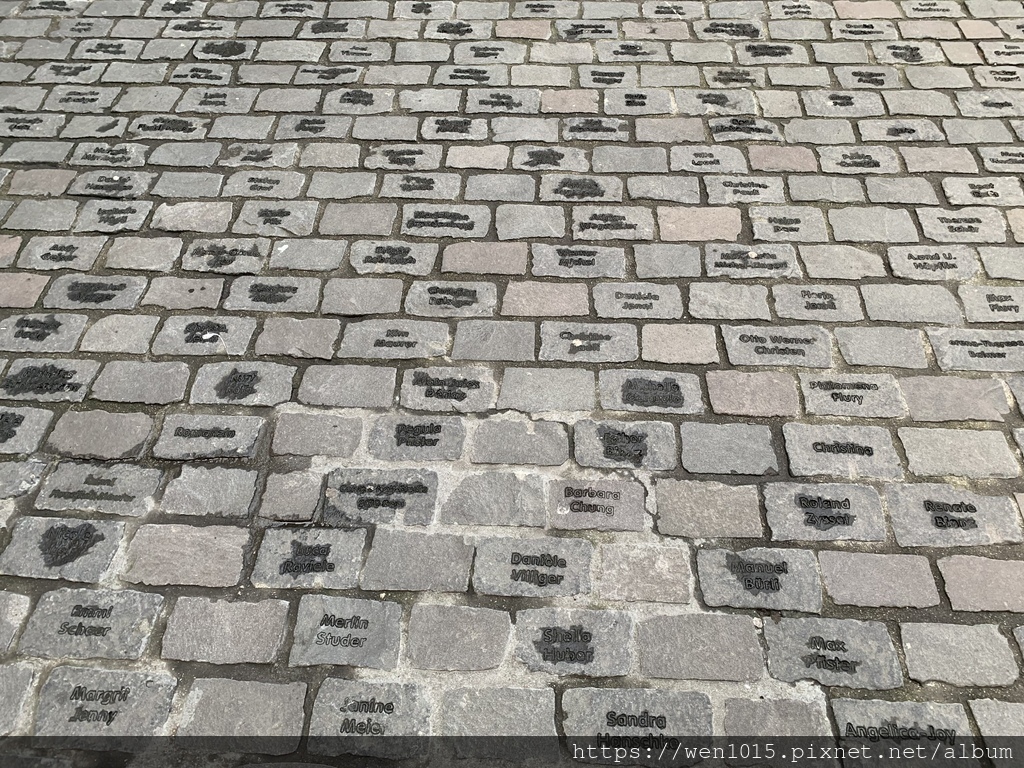 穀倉廣場Schmiedenplatz 前的地磚上刻有名字 這些都是當初捐款人的名字